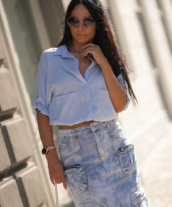 Chemise avec col, fermeture boutonnée, poches sur le devant se marie très bien avec une jupe, un jean ou un short 😍🛍🛒👌🔝 Confectionnée en tissu polyester avec un léger effet de froissement, elle donne une sensation d’aération et de légèreté grâce aux fibres Air-Flow.
